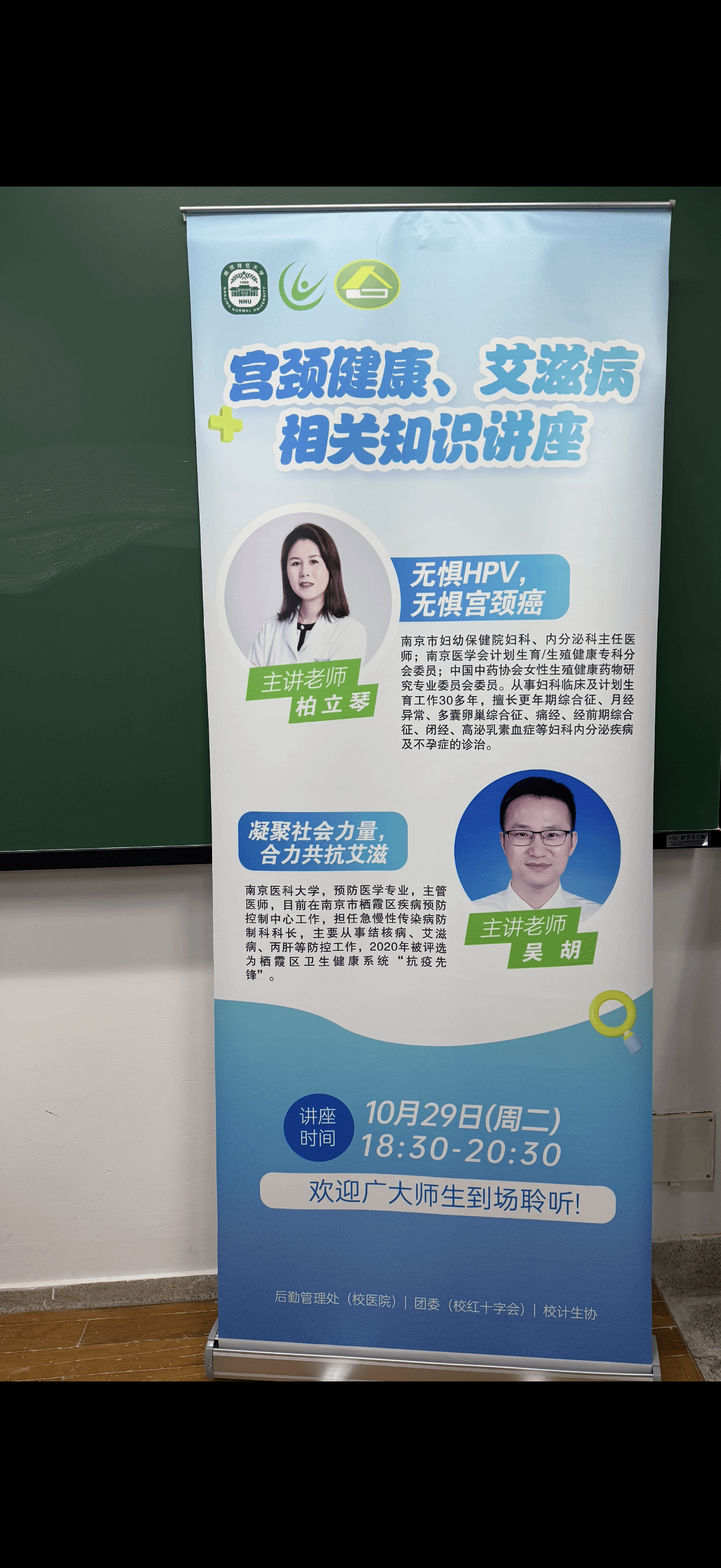 为了提高广大青年学生对性与生殖健康的认知,增强女性自我保健意识,我校于2024年10月29日18:30-20:30在仙林校区学明楼206举办了宫颈健康与艾滋病知识讲座。