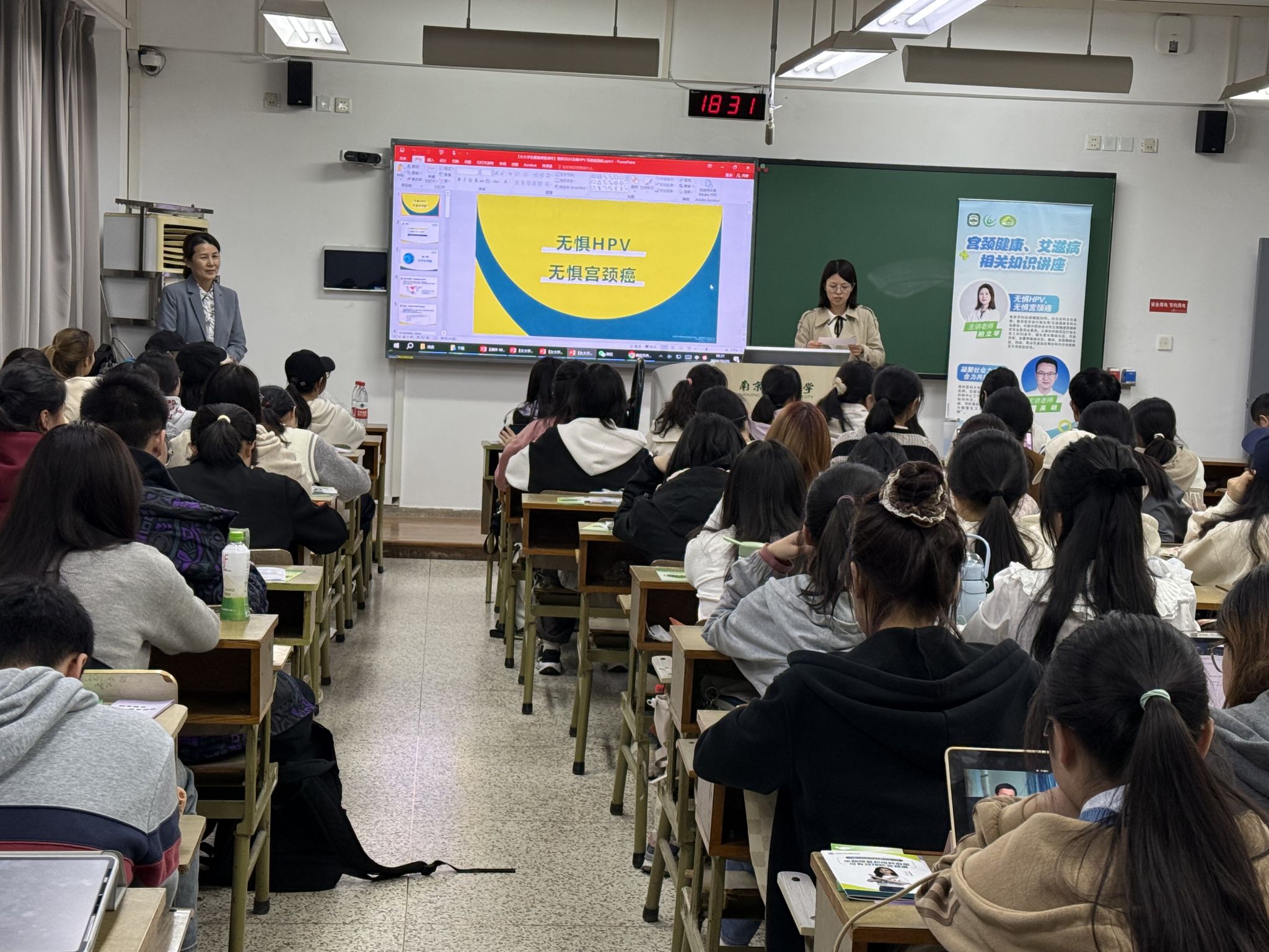 柏主任和吴科长分别就HPV疫苗的作用、宫颈癌的预防措施以及艾滋病的传播途径和防护方法进行了详细讲解,并为师生下发了“定期筛查和接种疫苗可有效预防宫颈癌”“青少年预防艾滋病基本知识”“知艾防艾 共享健康”等资料。互动环节中,同学们积极提问,现场气氛热烈。